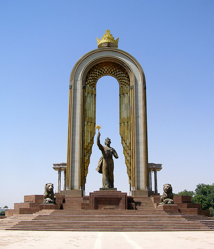 Душанбе. Памятник Исмаилу Сомони, основателю первого таджикского государства и династии Саманидов. Отлит в России и установлен к 1100-летию династии в 2001 году.