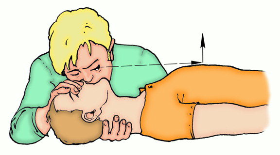 Дыхание рот в рот с одновременным контролем экскурсии грудной клетки