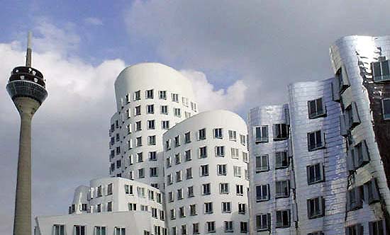 Дюссельдорф. Офис рекламного агентства. Здание, похожее на свернутые рулоны ватмана, построено по проекту американского архитектора Франка Гери.