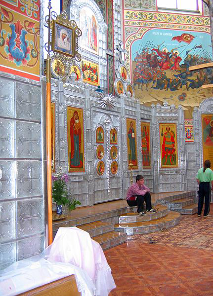 Дятьково. Иконостас церкви Неопалимой Купины. Единственный в России, изготовленный из хрусталя — произведение местных дятьковских хрустальщиков. Церковь с хрустальным иконостасом существовала в селе Дятьково еще в 19 веке, но до наших дней она не сохранилась. Фото А. Карпова.