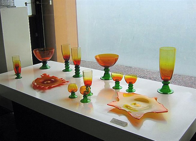Дятьково. Посуда из цветного стекла. Экспонат музея хрусталя. Фото А. Карпова.