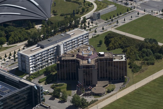 Европейская счетная палата с высоты. Люксембург. Архитекторы: Jim Clemes and Paul Noel. 2009 год. Фото: