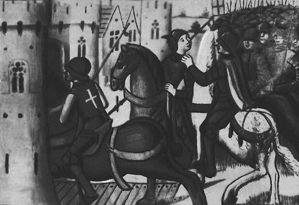 «Взятие Жанны Д`Арк в плен». Миниатюра из рукописи 15 в. Национальная библиотека. Париж.