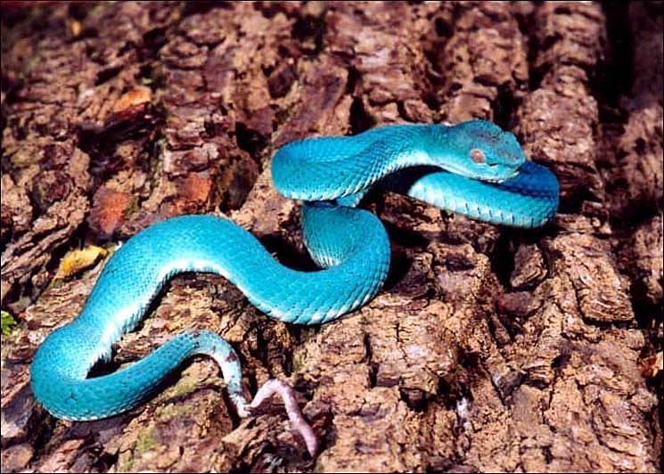 Жёлтопятнистая (филлипинская) куфия (Trimeresurus flavomaculatus) обитает во влажных лесах островов Филиппинского архипелага. На фотографии — особь редкого голубого окраса.