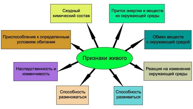 Все живые организмы имеют единый химический состав и общий план строения; способны существовать при поступлении в них энергии из окружающей среды; способны к обмену веществ с окружающей средой; приспособлены к определенным условиям жизни; реагируют на изменение условий окружающей среды; развиваются; размножаются; обладают наследственностью и изменчивостью.