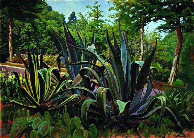 Д.Д. Жилинский. Агавы. 1982 год. Оргалит, темпера. Третьяковская галерея.