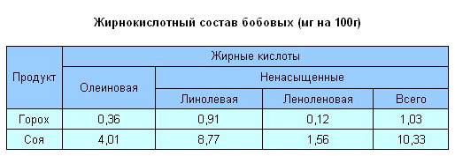 Жирнокислотный состав бобовых.