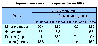 Жирнокислотный состав орехов.