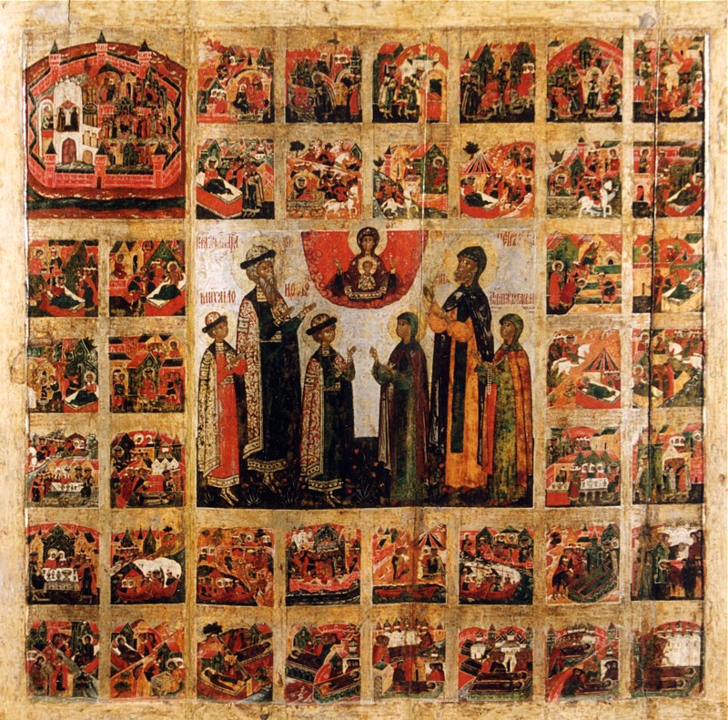 Икона Муромских святых князя Константина со чадами Михаилом и Феодором, Петра и Февронии и Иулиании Лазаревской с житием Петра и Февронии. XVII век. Фото: pravoslavie.ru