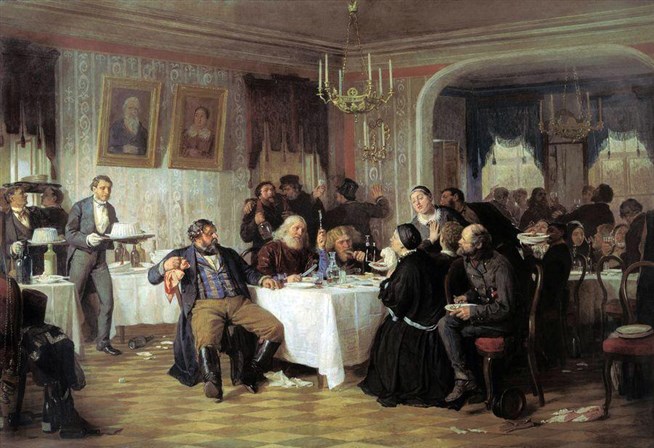 Ф.С. Журавлев. Купеческие поминки. 1876 год. Холст, масло. Третьяковская галерея.