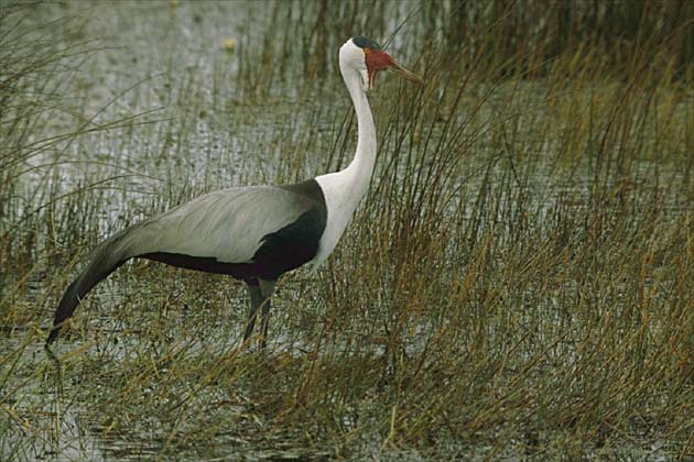 Сережчатый журавль (Bugeranus carunculatus) обитает в заболоченных местностях тропичасской Африки.