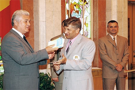 Н. А. Журавский (в центре) с президентом НОК и президентом Молдовы.