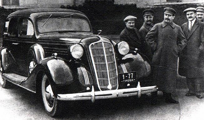 Сталин осматривает новый автомобиль ЗИС 101. (1936)