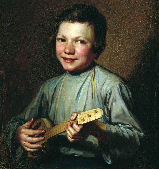 П.Е. Заболотский. Мальчик с балалайкой. 1835 год. Картон, масло. Русский музей, Петербург.