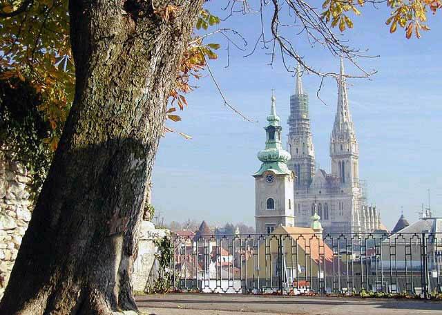 Загреб. Столица Хорватии образовалась при слиянии двух городов Каптола и Градеца в 1850 г. На заднем плане: на площади Каптол кафедральный собор Св. Степана (с двумя готическими башнями).