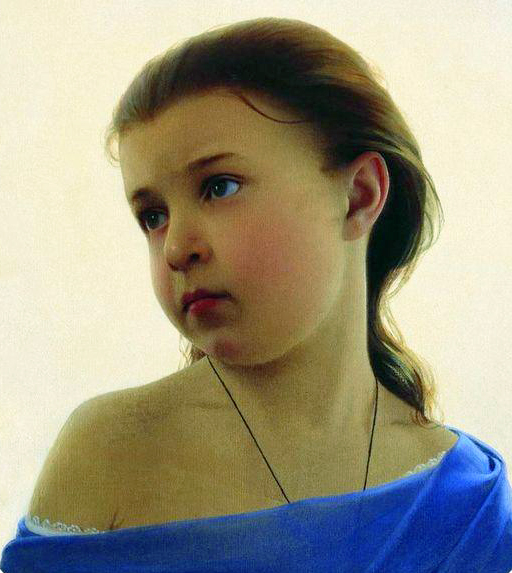 С.К. Зарянко. Девочка в голубом платье. Портрет Наталии Зарянко, дочери художника. 1870 год. Холст, масло. Третьяковская галерея.