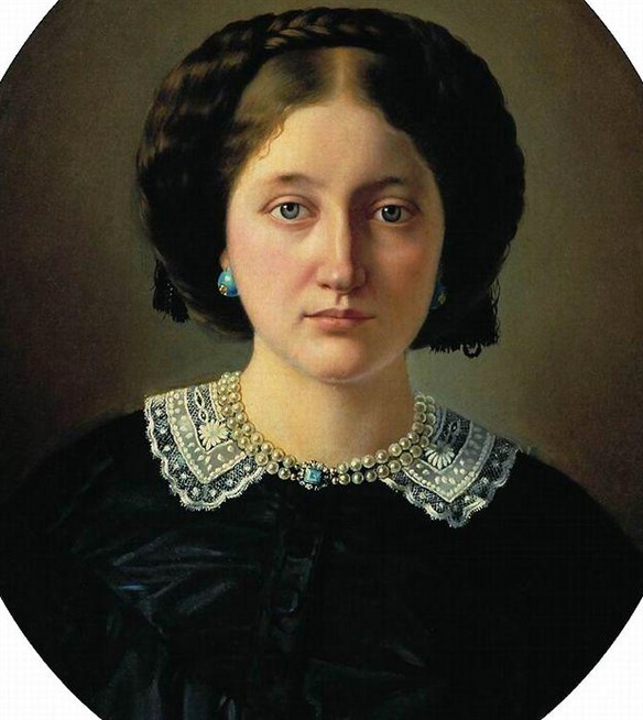 С.К. Зарянко. Портрет Варвары Александровны Иордан, урожденной Пущиной. Не ранее 1855 года. Холст, масло. Тверская картинная галерея.