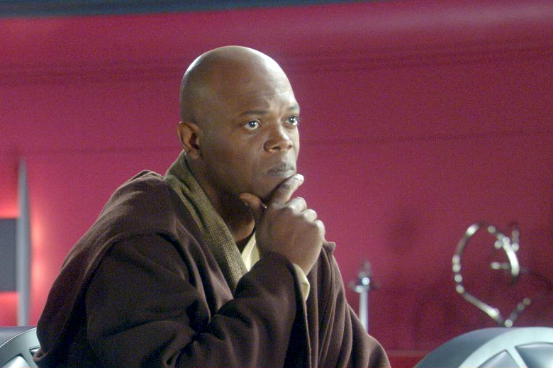 Учитель джедаев Мейс Уинду (Самуэль Л. Джексон). Кадр из фильма «Звездные войны-2. Атака клонов». 2002 год.