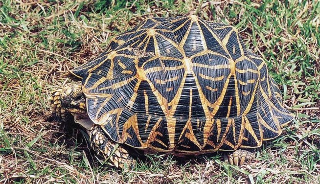 Звездчатая (индийская звездчатая) черепаха (Geochelone elegans).