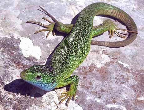 Самец зеленой ящерицы (Lacerta viridis).