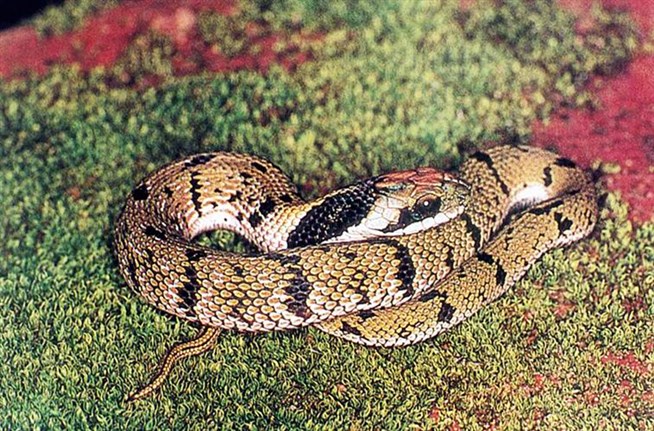 Зелёный килебрюхий уж (Macropisthodon plumbicolor) относится к роду килебрюхих ужей Буланже подсемейства ужовых змей. Фотография В. В. Климова.