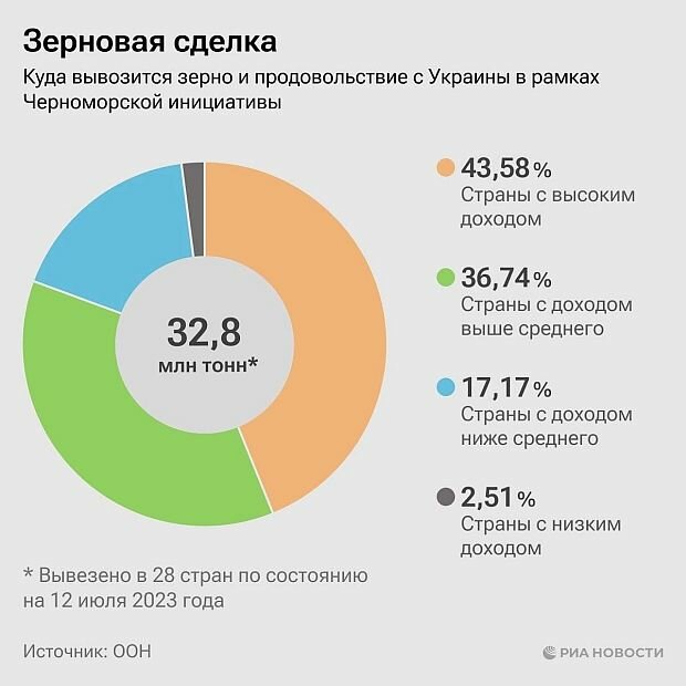 Вывоз зерна и продовольствия с территории Украины в рамках Черноморской инииативы в 2022-2023 годах.