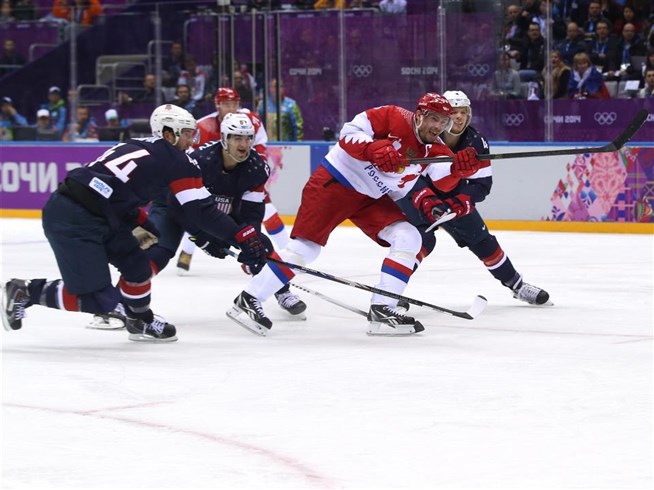Хоккей на льду, мужчины, предварительный раунд, Россия-США. На льду Павел Дацюк. Зимние Олимпийские игры в Сочи 2014. Фото:
