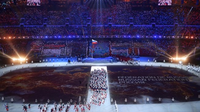 Выход российских спортсменов на церемонии открытия Олимпийских игр в Сочи. 2014 год. Фото: