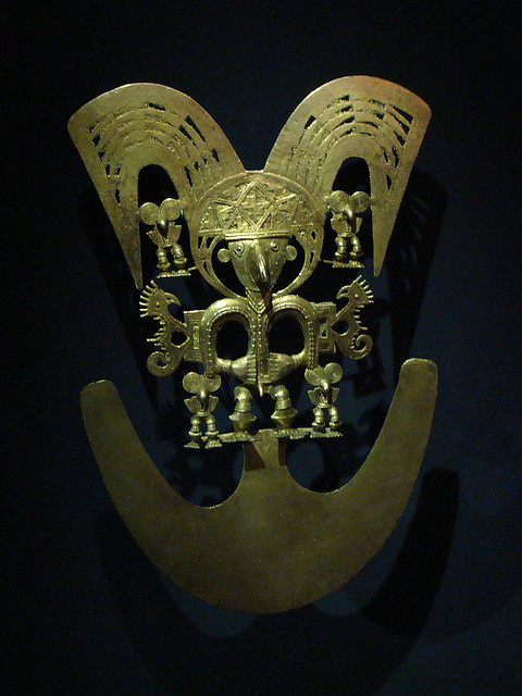 Золотые изделия индейцев (шаманский амулет), произведенные до 16 века. Музей золота. Богота, Колумбия. 2007 год. Фото: jimmysmith, flickr