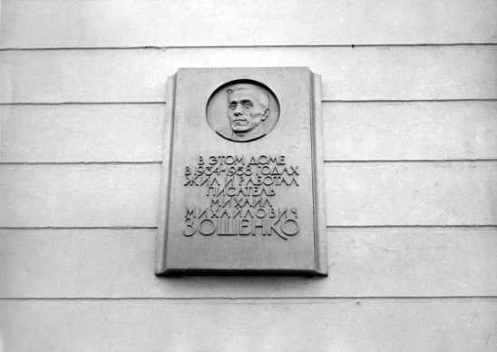 Мемориальная доска на доме, в котором жил и работал М. Зощенко.