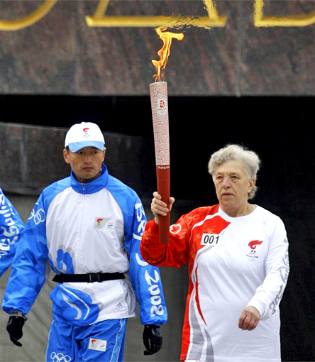 Г.И. Зыбина на эстафете Олимпийского огня. 2008 год. Петербург.