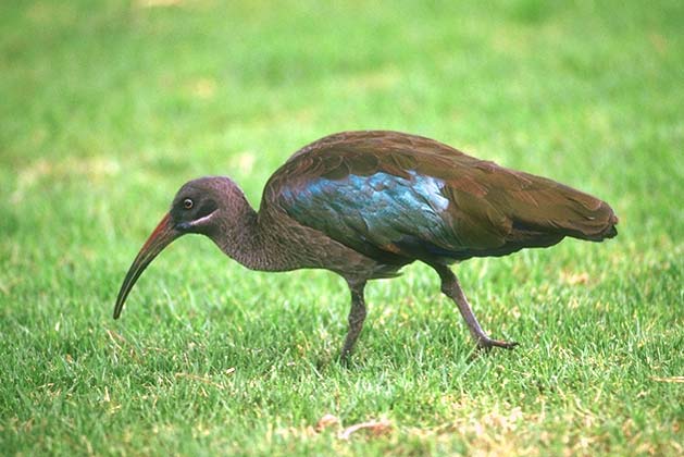 Великолепный ибис, обитающий в африканской саванне, отличается зеленовато-голубым металлическим блеском кроющих перьев, а также громким криком «ха-да-да», издаваемым в полете.