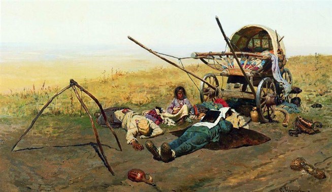 С.В. Иванов. В дороге. Смерть переселенца. 1889 год. Холст, масло. Третьяковская галерея.