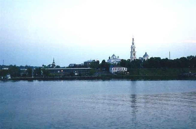 Кинешма. Вид на набережную Волги. Справа Троицкий собор.