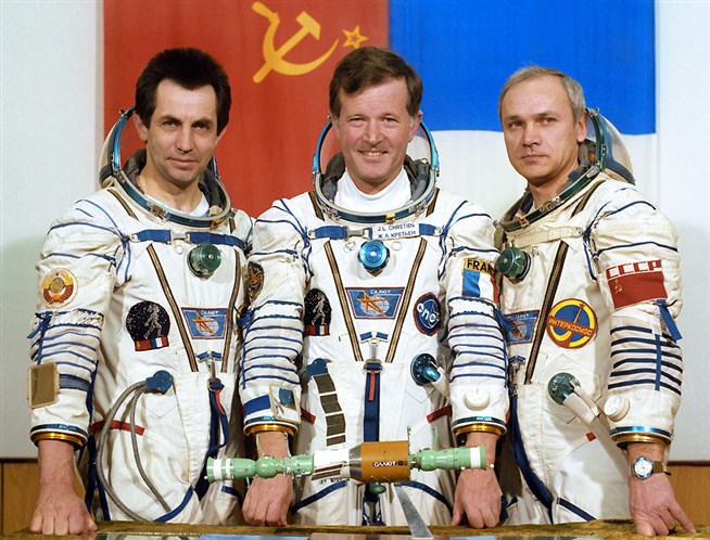 Экипаж «Союза Т-6»: А. Иванченков, Ж.-Л. Кретьен, В. Джанибеков. Апрель 1982 года.