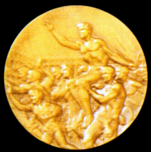 Олимпийская медаль (оборотная сторона) Игр XVI Олимпиады.