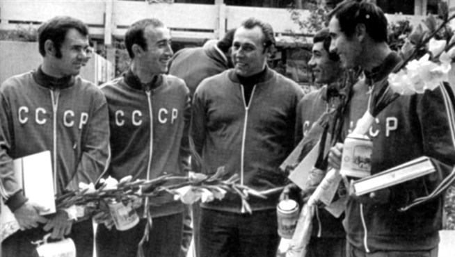 Олимпийский чемпионы в групповой шоссейной гонке (в центре Виктор Капитонов).