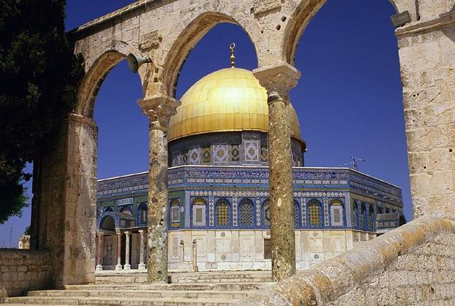 Мечеть Омара. Построена на месте, где был храм Соломона. Под куполом мечети находится скала, с которой, по верованиям мусульман, Мохаммед вознесся в небо. По представлениям же иудеев, именно здесь находилось Святое Святых Иерусалимского храма.