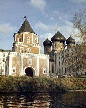 Мостовая башня построена для охраны въезда на 14-пролетный каменный мост (не сохранился). Служила колокольней Покровского собора, который виден на заднем плане.