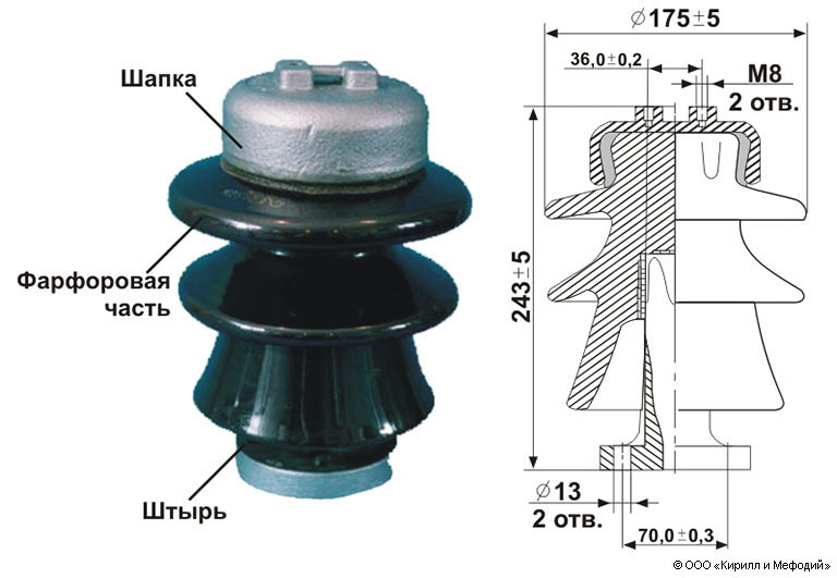 Опорный штыревой изолятор высокого напряжения.