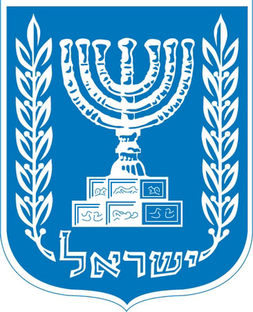Герб Израиля был принят 10 февраля 1949 года. Он представляет собой семисвечник (менора), обрамленный двумя оливковыми ветвями (символ мира), исходящими из написанного на иврите названия государства. Золотой семисвечник — один из главных культовых предметов иудаизма.