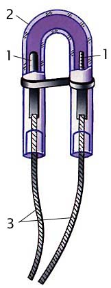Импульсная лампа ксеноновая: 1 — электроды; 2 — оболочка; 3 — токоподводы.