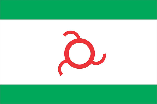 Флаг Республики Ингушетия был принят 15 июня 1994 года. В центре широкой белой полосы изображен красный солярный знак.