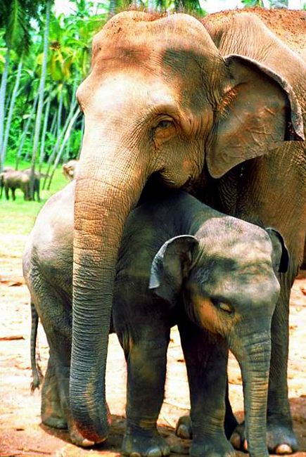 Индийский слон (Elephas maximus). Слониха и слоненок. Цейлон. Фотография В. В. Климова.