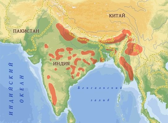 Ареал индийского тигра. Индийский (бенгальский) тигр (Panthera tigris tigris) — подвид тигра, распространен в Индии и соседних странах. Популяция подвида — самая крупная: составляет от 3200 до 4700 особей. Вместе с хвостом длина индийского тигра до 3 метров, а вес составляет 180-260 кг (у самок - 100-160 кг). Белый индийский тигр — не альбинос и не отдельный подвид, а разновидность окраса. Она встречается только у индийского тигра. Ген белизны — рецессивный, поэтому для рождения белого тигренка его должны иметь оба родителя.