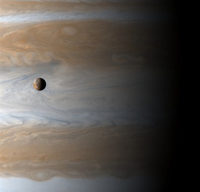Ио на фоне Юпитера. Фотография сделана АМС «Кассини» 1 января 2001.