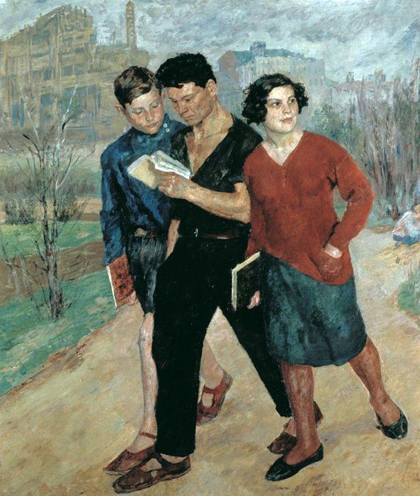 Б.В. Иогансон. Рабфак идет. Вузовцы. 1928 год. Бумага на холсте, масло. Киевский музей русского искусства.