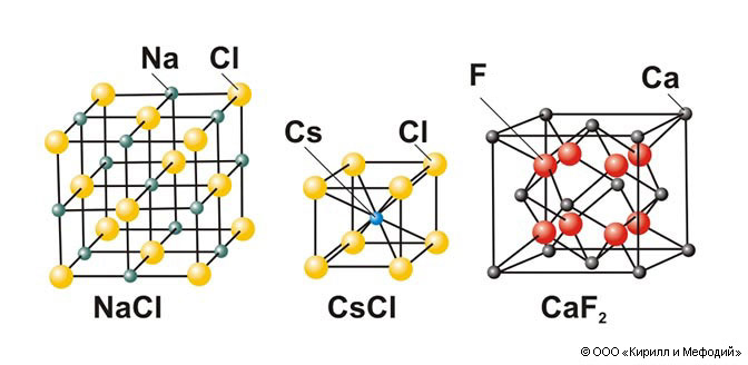 Строение некоторых ионных кристаллов.