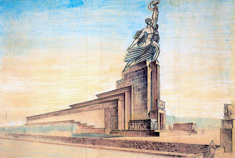 Эскиз павильона СССР на Международной выставке в Париже в 1937 (осуществлен). Архитектор Б. М. Иофан.