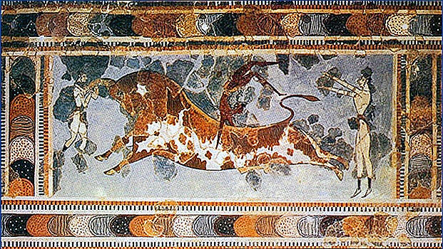 Фреска «Игры с быком». Около 1500 до н.э. Археологический музей. Ираклион. Крит.